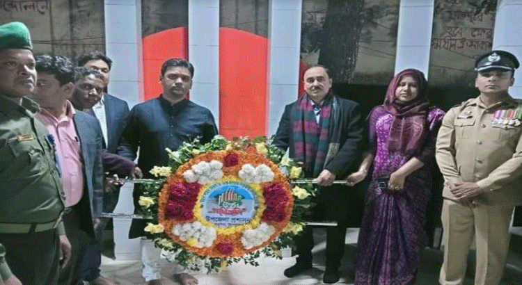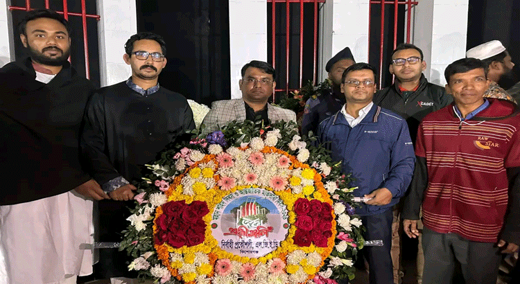 কিশোরগঞ্জ এলজিইডির নির্বাহী প্রকৌশলীর নেতৃত্বে শহিদ মিনারে পুষ্পস্তবক অর্পণ