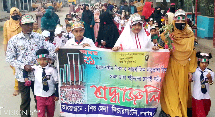 শিশু মেলা কিন্ডারগার্টেনের পরিচালক ও প্রধান শিক্ষক মো. আনোয়ার কামাল রূপনের আয়োজনে সকালে জাতীয় পতাকা অর্ধনিমিত্তকরণের পর প্রভাত ফেরী ও আলোচনা সভা অনুষ্ঠিত হয়। প্রভাত ফেরীটি  কিন্ডারগার্টেন স্কুল থেকে শুরু করে নান্দাইল রোড বাজারের বিভিন্ন গলি হয়ে তাড়াইল-নান্দাইল সড়ক প্রদক্ষিণ করে নান্দাইল রোড উচ্চ বিদ্যালয় ও নান্দাইল রোড সরকারি প্রাথমিক বিদ্যালয়ের পৃথক দুটি শহীদ মিনারে গিয়ে শেষ করে। এসময় কিন্ডারগার্টেনের কোমলমতি শিশু-কিশোর ছাত্র-ছাত্রীরা ফুল দিয়ে শহিদদের প্রতি শ্রদ্ধা নিবেদন করে। শহিদদের প্রতি শ্রদ্ধা নিবেদনের পর শিশু মেলা কিন্ডারগার্টেনের সভাপতি নান্দাইল রোড উচ্চ বিদ্যালয়ের সাবেক প্রধান শিক্ষক আব্দুল কাইয়ূম বাবুলের সভপতিত্বে শহিদদের স্মরণে এক আলোচনা সভা অনুষ্ঠিত হয়।