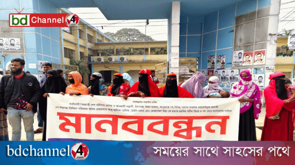 বৃহস্পতিবার, ২৩ জানুয়ারি উপজেলা পরিষদের সামনে অনুষ্ঠিত এ মানববন্ধনে ঈশ্বরগঞ্জ ইউনিয়নের সর্বস্তরের জনগণ অংশগ্রহণ করেন।