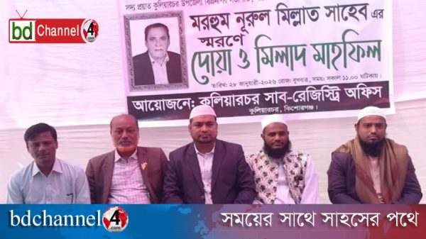 কুলিয়ারচর সাব-রেজিস্ট্রি অফিসে মরহুম নূরুল মিল্লাতের স্মরণে দোয়া মাহফিল অনুষ্ঠিত