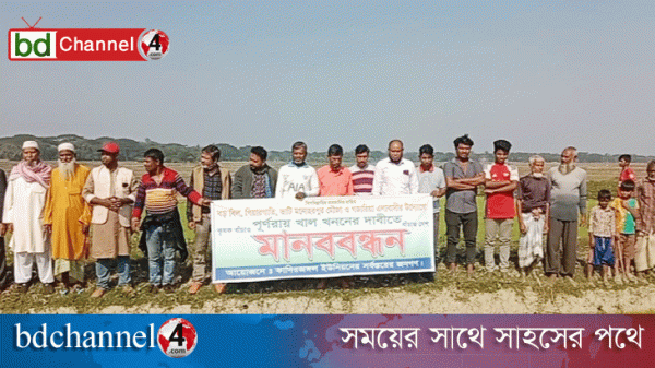 করিমগঞ্জে খাল পুনঃখননের দাবিতে মানববন্ধন