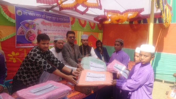 অষ্টগ্রামে হিলফুল ফুযুল যুব সংঘের উদ্যোগে শীতার্তদের মাঝে কম্বল বিতরণ