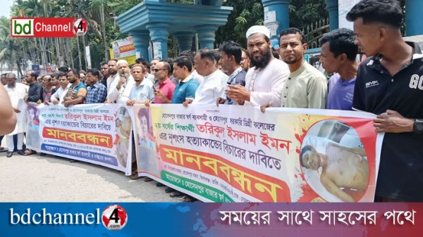 কিশোরগঞ্জের হোসেনপুরে শিক্ষার্থী হত্যার বিচার দাবিতে মানববন্ধন ও বিক্ষোভ
