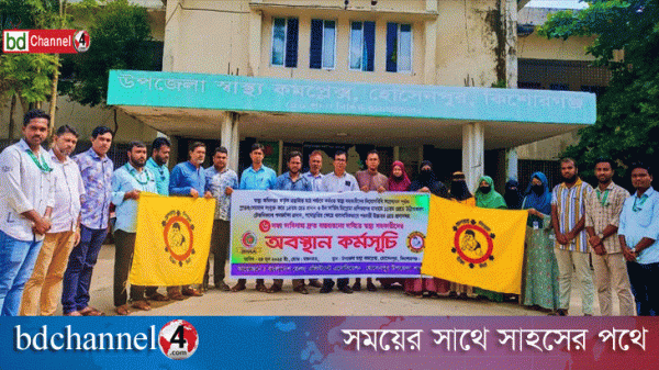 হোসেনপুরে স্বাস্থ্য সহকারীদের অবস্থান কর্মসূচি পালন