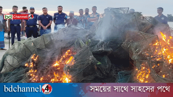 ইটনায় চলতি মাসে ২৩৫টি চায়না জাল আটকের পর পুড়িয়ে ধংস