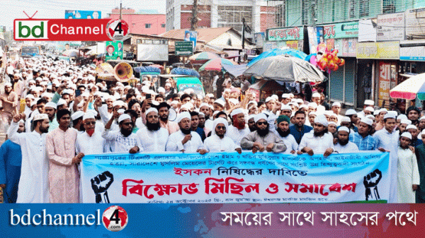 ইসকন নিষিদ্ধের দাবিতে ঈশ্বরগঞ্জে বিক্ষোভ মিছিল ও সমাবেশ