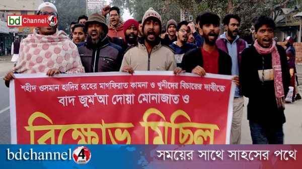 শহিদ ওসমান হাদির খুনিদের বিচারের দাবিতে নান্দাইলে দোয়া ও বিক্ষোভ মিছিল