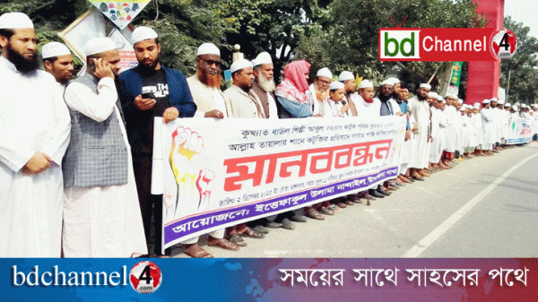 বাউল আবুল সরকারের ফাঁসির দাবিতে নান্দাইলে তৌহিদী জনতার মানবন্ধন