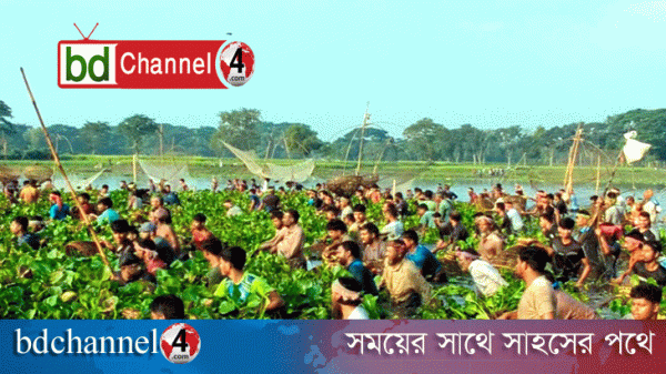 নান্দাইলে বলদা বিলে হাইত উৎসবে মাছ শিকারীদের ঢল