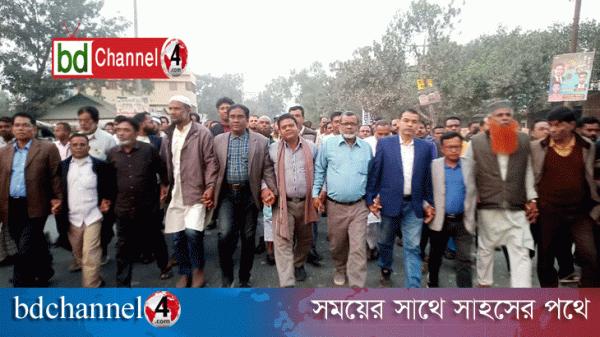 আ’লীগের নৈরাজ্য সৃষ্টির পাঁয়তারার প্রতিবাদে নান্দাইলে বিএনপি’র বিক্ষোভ মিছিল
