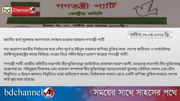 জাতীয় স্বার্থ সুরক্ষায় জনগণকে সোচ্চার হওয়ার আহ্বান গণতন্ত্রী পার্টির