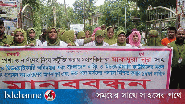 পাকুন্দিয়ায় স্বাস্থ্য কমপ্লেক্সে কর্মরত নার্সদের মানববন্ধন ও প্রতিবাদ সভা